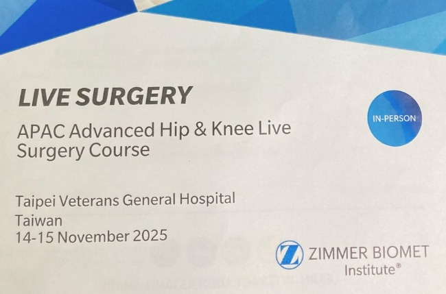 由陳威明院長、陳正豐主任帶領,亞太膝髖關節示範手術論壇已進入第十年舉辦,每年的示範手術內容都大獲好評,展現台北榮總關節重建科的紮實基礎及